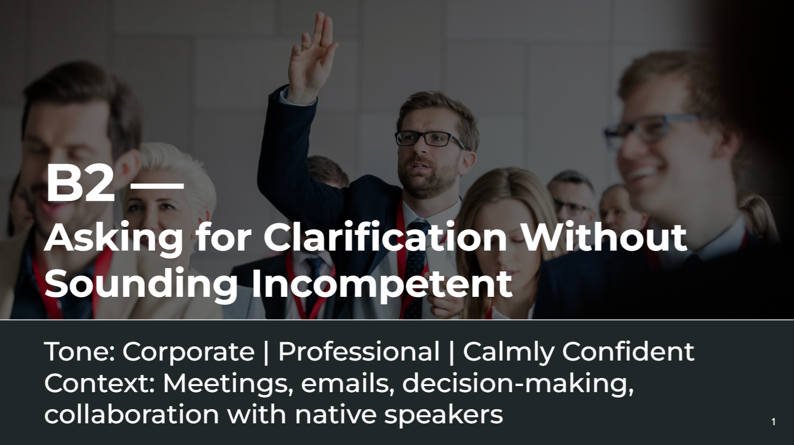 Focus: Explore different types of questions in the English language with corporate, professional, and calmly confident tones.